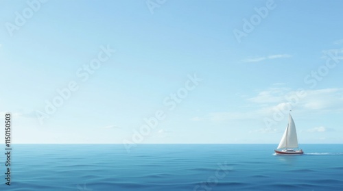 Obraz premium Serene Sailboat on a Calm Ocean Under Clear Skies