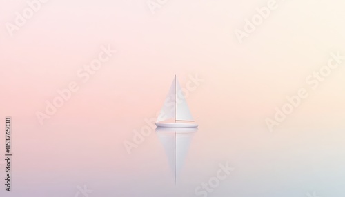 © AiAbstract, Fototapeta premium Serene Sailing Boat at Dusk on Calm Waters with Gentle Pastel Sky and Soft Reflection