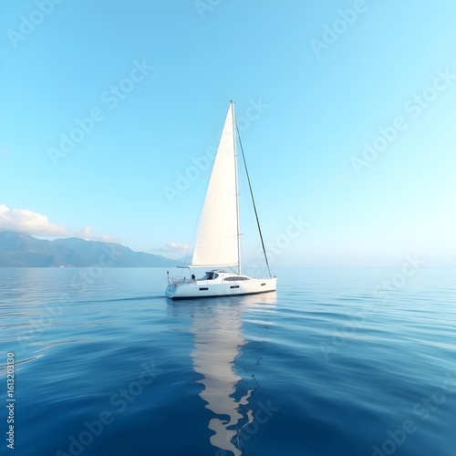 Naklejka premium Serene Sailing Yacht on Calm Ocean Waters Under a Clear Blue Sky