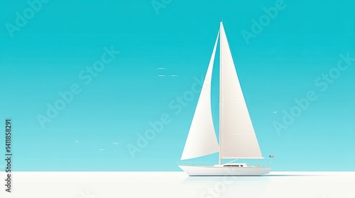 © Chano_1_na, Obraz premium Serene Sailing Yacht on Tranquil Blue Ocean Under Clear Sky with Gentle Sea Breeze