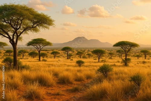 © Rawpixel.com, Obraz premium Serene savanna landscape at sunset.
