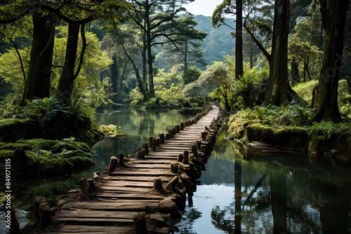 © JONATAS, Obraz premium Serene scenario in the Forest Garden of Campos do Jordão., generative IA