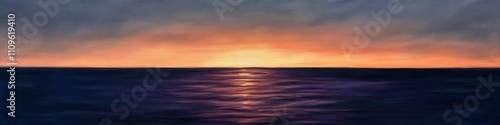Obraz premium Serene seascape at sunset, featuring vibrant colors reflecting on tranquil...