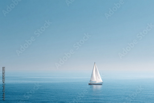 Obraz premium Serene seascape featuring a white sailboat gliding across calm, blue waters under a clear sky. Evokes peace, freedom, journey. Ideal for travel, lifestyle, and motivational themes.