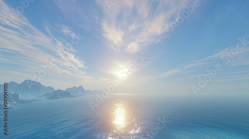 © Nuttaya Nampai, Obraz premium Serene Seascape with Golden Sunlight Glimmering on Calm Waters