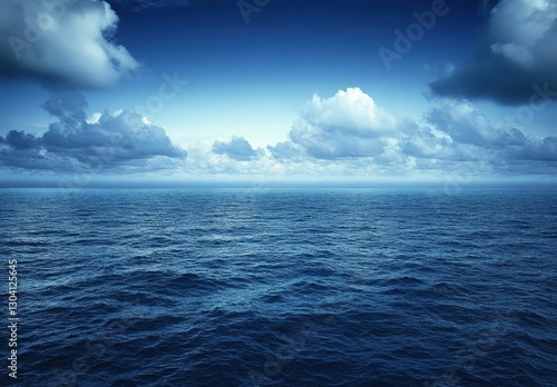 Fototapeta premium Serene Seascape with Tranquil Blue Waters and Majestic Clouds Under a Clear...