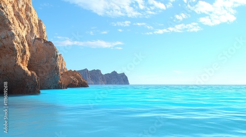 © Hestutiningsih, Fototapeta premium Serene seaside view with cliffs and clear blue water.
