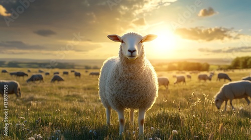 © Sukumar, Fototapeta premium Serene sheep flock open landscape wallpapers
