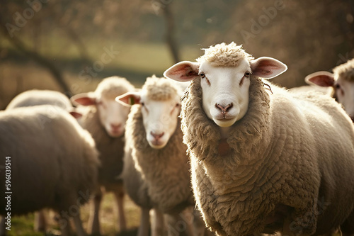 Fototapeta premium Serene Sheep Grazing on Lush Pasture Farm in the Countryside. created with...