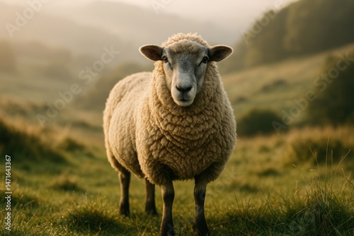 © Rawpixel.com, Naklejka premium Serene sheep in misty landscape.