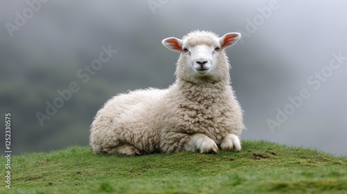 © romad, Fototapeta premium Serene Sheep in Misty Meadow