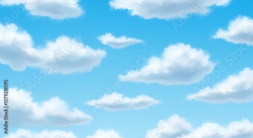 © Dao, Fototapeta premium Serene Sky Digital Painting Vibrant Blues Soft Clouds AI Generated
