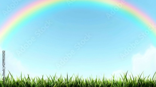 Obraz premium Serene Sky Rainbow Over Green Grass Spring Season Nature Background Image Illustration 90