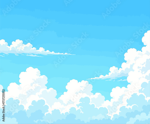 Fototapeta premium Serene Sky with Fluffy Clouds in Blue Horizon