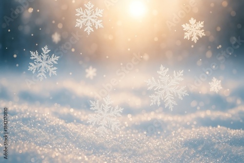 © Rawpixel.com, Naklejka premium Serene snowflakes under golden sunlight.