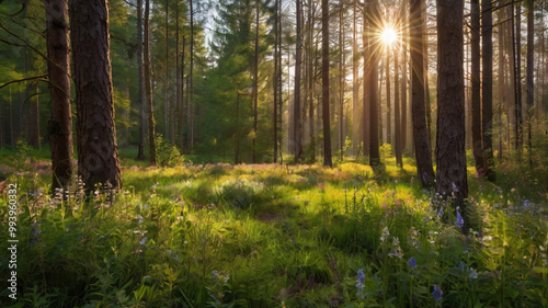 Obraz premium Serene Spring Forest with Sunlight Rays
