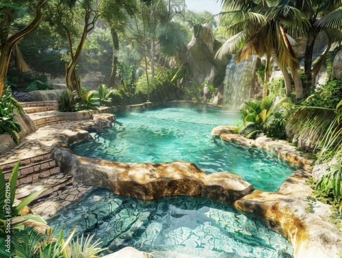 © Seno, Naklejka premium Serene Springtime along the Riverbank. Lush plants and flowing water.