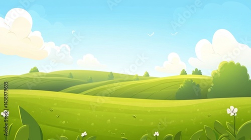 © madu, Obraz premium Serene Springtime Hillscape Illustration
