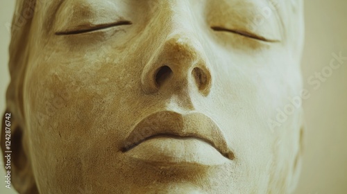 Fototapeta premium Serene stone face sculpture closeup, gallery, peaceful background, meditation