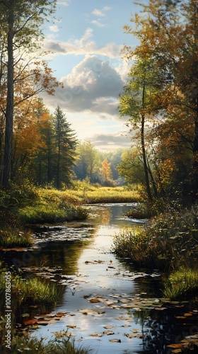 © projek, Fototapeta premium Serene Stream in Autumn Forest