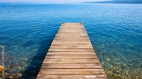 Fototapeta premium Serene summer lakeside pontoon pier in a calm futuristic inspired triadic...
