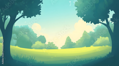 Fototapeta premium Serene Summer Meadow Landscape With Lush Trees
