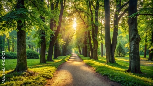 Fototapeta premium Serene Summer Stroll: Minimalist Pavlovsky Park, St. Petersburg