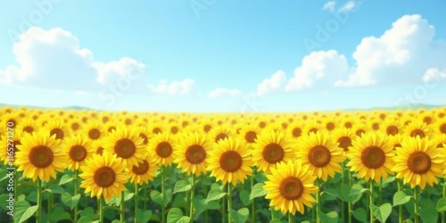 Fototapeta premium Serene Summer Sunflowers in a Vast Field Under a Bright Sky