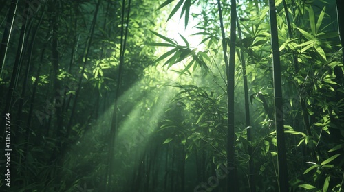 © anis-aswanee, Obraz premium Serene Sunlight Filtering Through a Lush Bamboo Forest