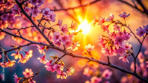 © prapatsorn, Fototapeta premium Serene Sunlight Illuminating Silhouette Cherry Blossoms - Spring Nature Stock Photo