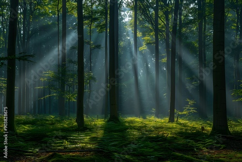 © D, Obraz premium Serene Sunlit Forest Scene for Nature Lovers and Environmental Design Projects