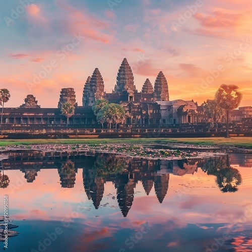 Obraz premium Serene Sunrise at Angkor Wat, Cambodia