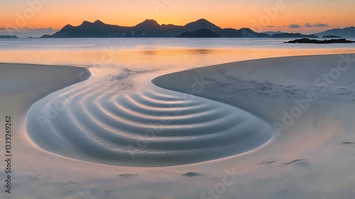 © Shehub, Fototapeta premium Serene Sunrise Beach Landscape with Water Patterns