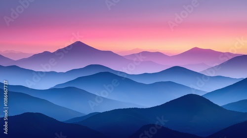© Narongsag, Fototapeta premium Serene Sunrise Majestic Mountain Range Panorama Colorful Landscape