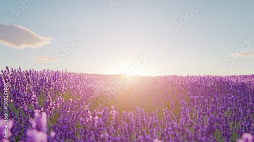 © Ikhsan, Naklejka premium Serene sunrise over a vast lavender field.