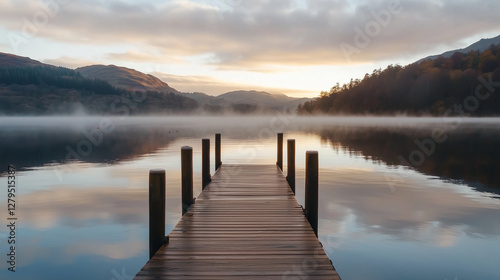 © forenna, Fototapeta premium Serene Sunrise Over a Wooden Pier at a Calm Lake
