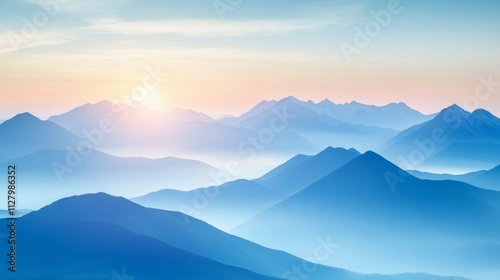 © Vader Stocker, Fototapeta premium Serene Sunrise Over Blue Misty Mountain Ranges