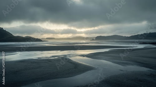 Fototapeta premium Serene Sunrise Over Dramatic Beach Landscape