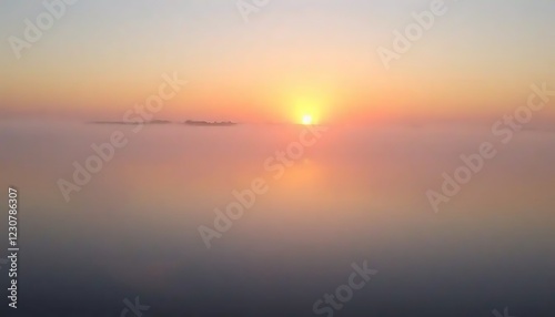 © Siti, Obraz premium Serene Sunrise Over Foggy Lake Landscape