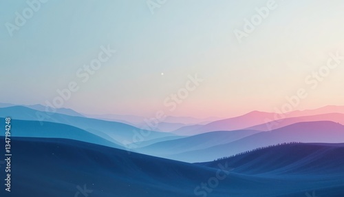 Obraz premium Serene sunrise over layered mountains nature aerial view tranquil landscape soft color palette for meditation and relaxation