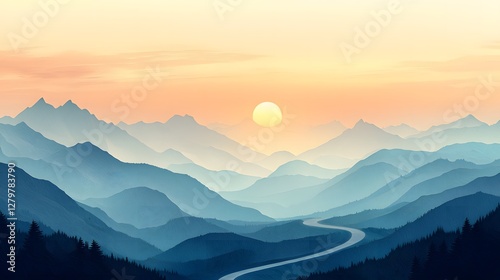 Fototapeta premium Serene sunrise over majestic mountains scenic landscape artwork peaceful...