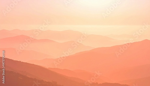 © MDzAi, Obraz premium Serene sunrise over mountain range nature landscape photography tranquil environment aerial view soft colors