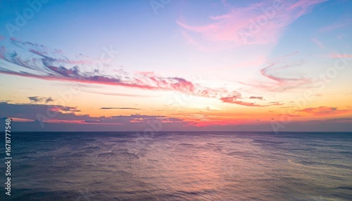 Fototapeta premium Serene Sunrise Over Open Ocean with Soft Pink And Orange Sky