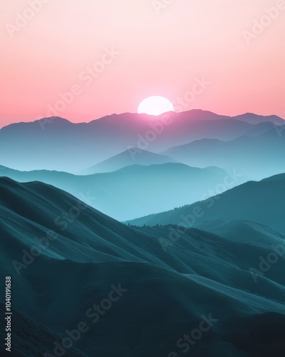 © Thanawin, Fototapeta premium Serene Sunrise Over Pastel Mountains