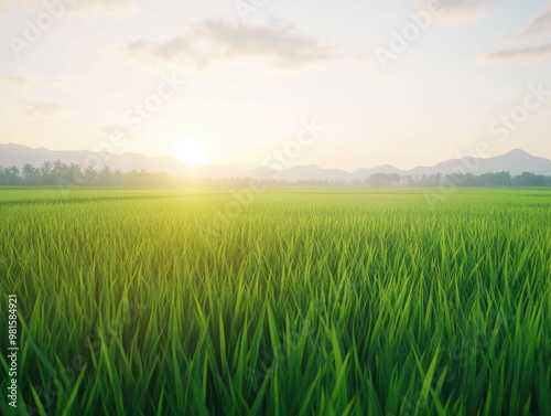 © Elena, Fototapeta premium Serene Sunrise Over Rice Field