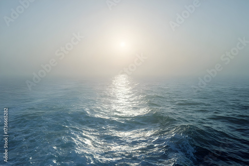 © Svetlana, Obraz premium Serene sunrise over the vast open ocean with endless horizon