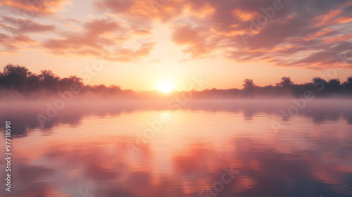 Naklejka premium Serene Sunrise Over Tranquil Lake