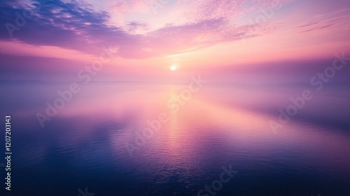 Fototapeta premium Serene sunrise over tranquil waters with soft pastel colors reflecting in the calm sea