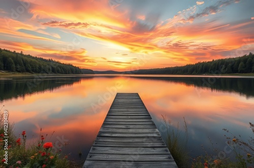 © Jennie Pavl, Fototapeta premium Serene Sunset at a Secluded Lake