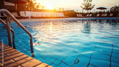 Obraz premium Serene Sunset at Swimming Pool with Clear Water